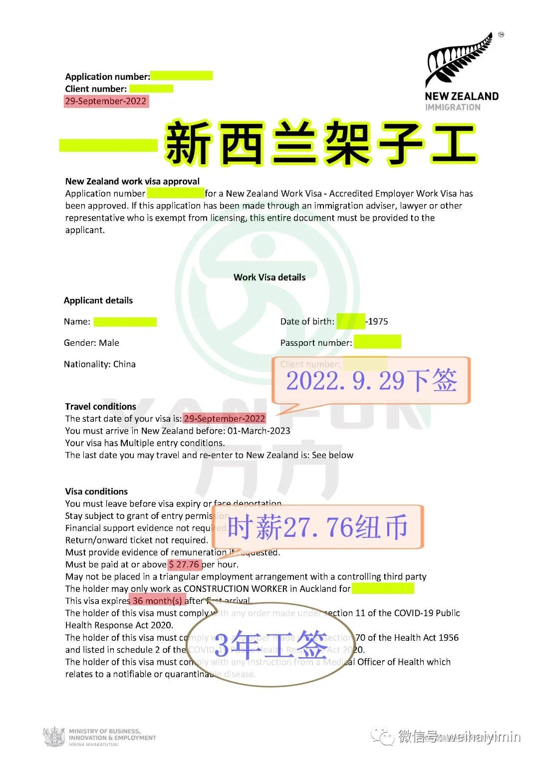 恭喜H师傅,顺利拿到新西兰3年工作签,时薪27.76纽币,终于实现税后月入20000左右。