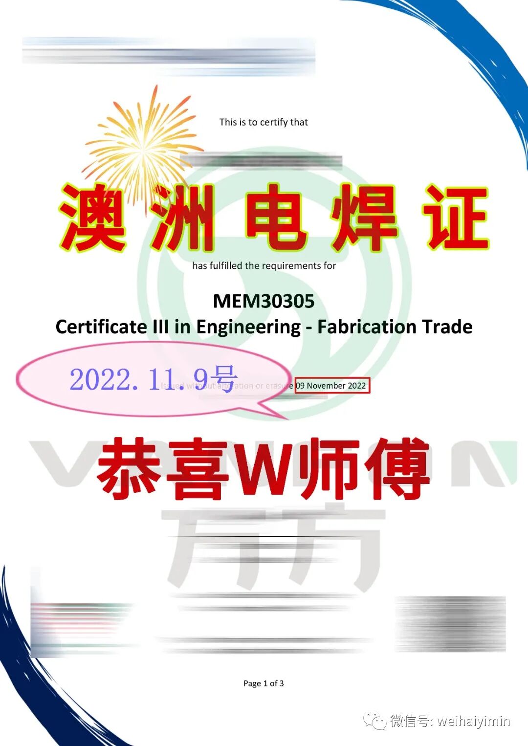 澳洲电焊技能评估相当于国内的电焊证,是在澳洲从事电焊工作必备的技能证明。进行技能评估需要英语达到雅思单科5分,或者PTE单科36分,需要使用英语熟练表达自己的专业电焊知识。如果你有意向澳洲电焊工,现在就开始预约技能评估考试吧!
