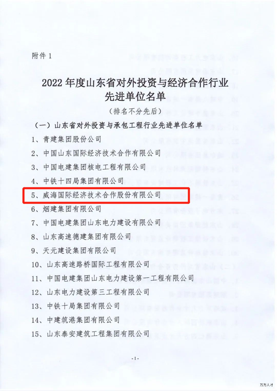 2月13日山东省对外投资与经济合作商会公布了《2022年度对外投资与经济合作行业先进单位》的评选结果,“球盟会网页登录 ”成功入选!