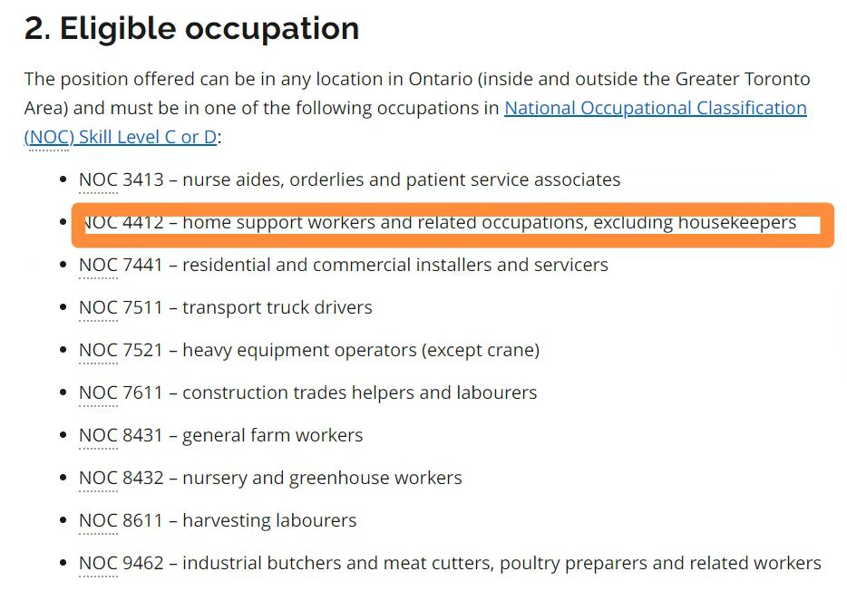 安省省政府提名项目: Home Support Workers 在安大略省紧缺职业名单中,在安省工作满9个月后可以申请永居。