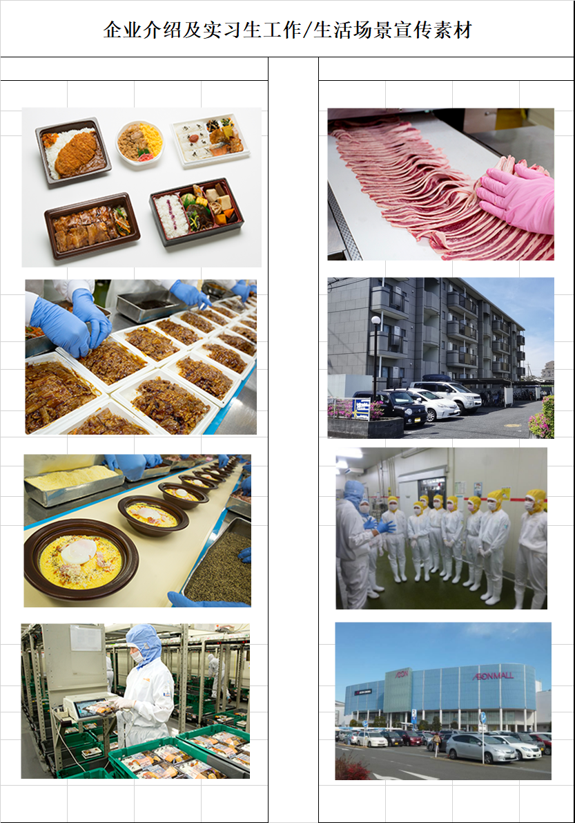 实习生赴日后主要从事盒饭、饭团、炒饭、炒面等食品的加工工作,大部分工作在车间流水线完成,工作较为轻松。会社有内部食堂,可低价为实习生提供工作餐,另外会社每月免费向实习生提供5kg大米,月净到手收入20万日元以上。