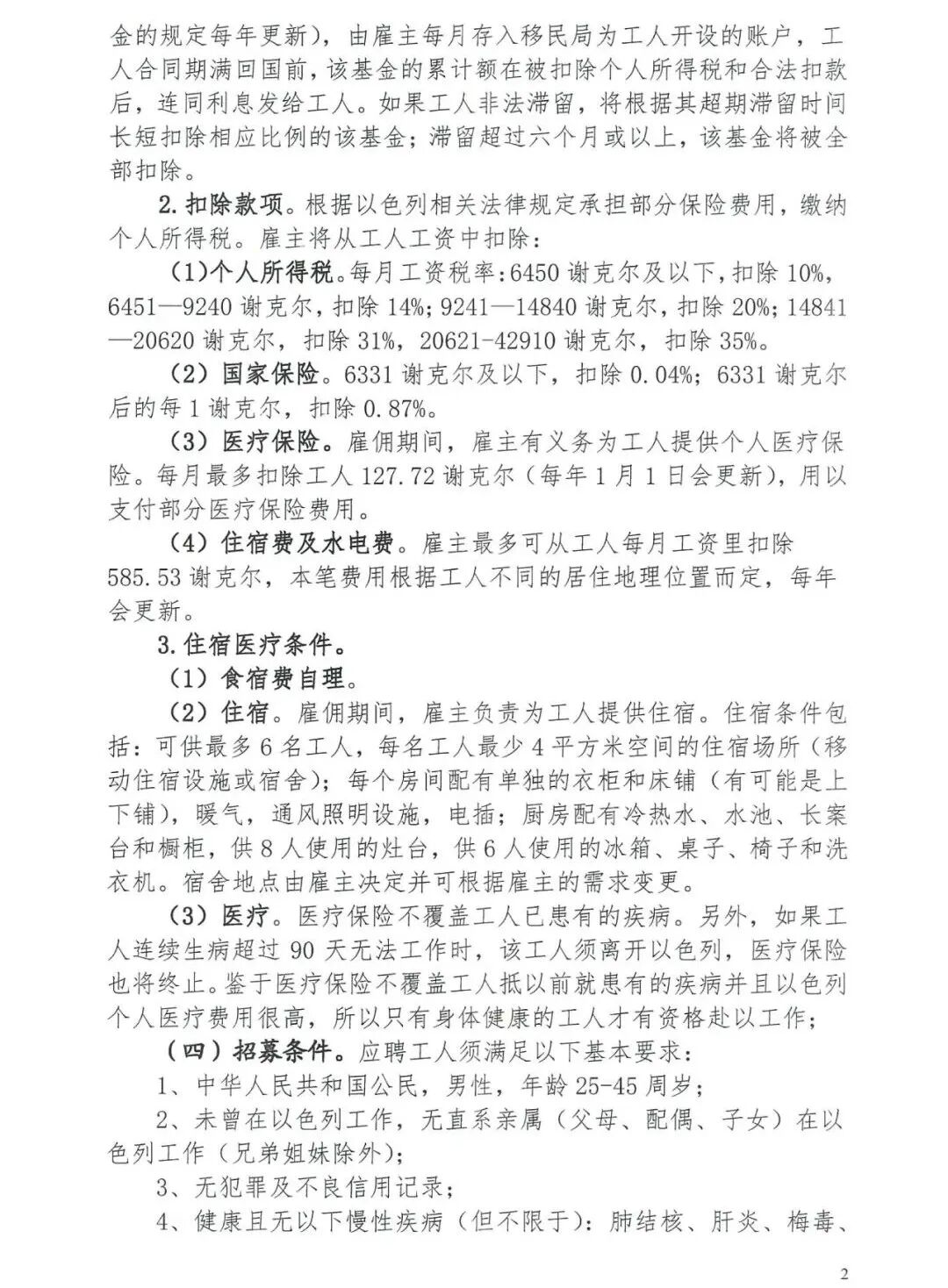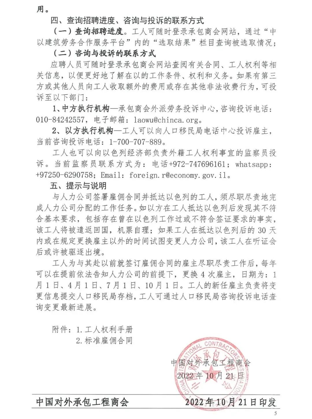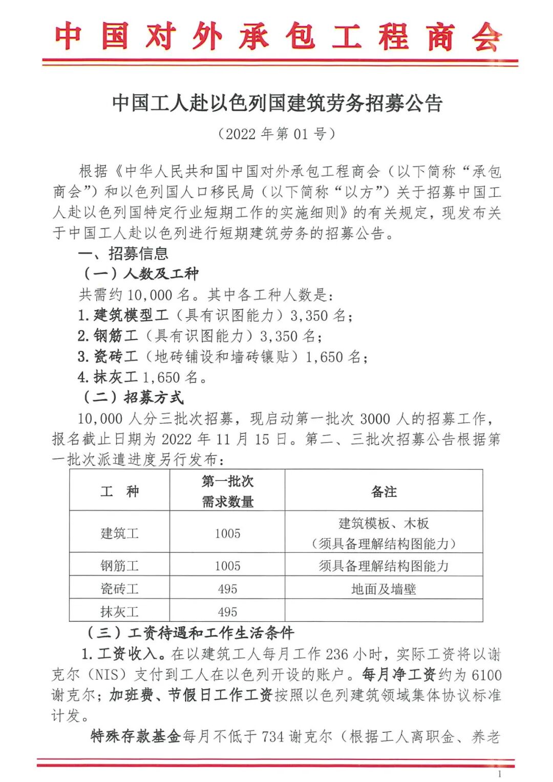 中国工人赴以色列国建筑劳务招募公告!(2022年第01号)