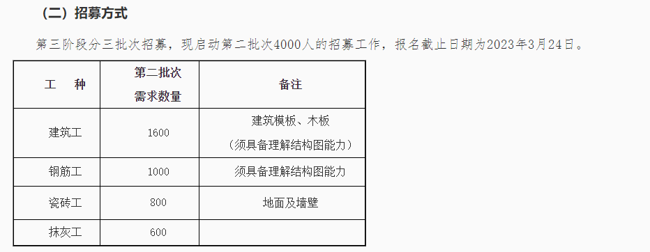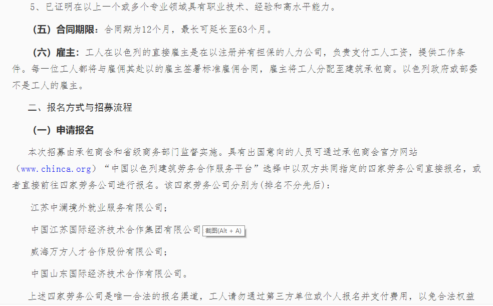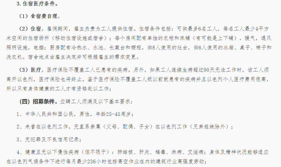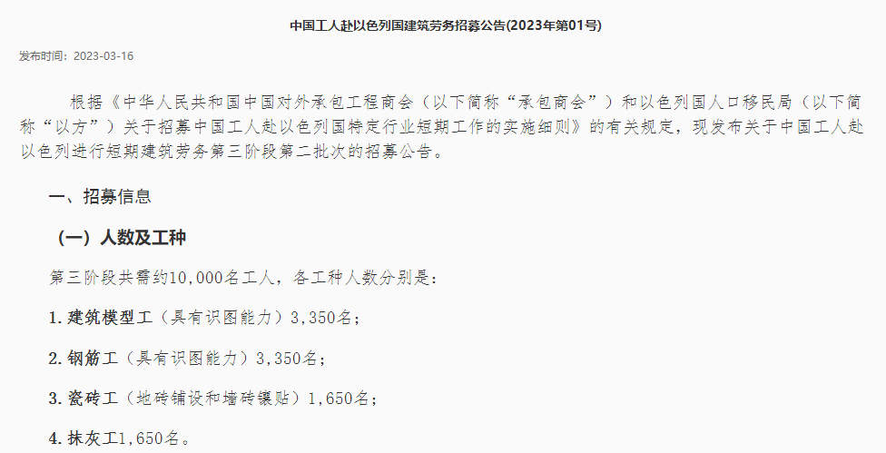 中国工人赴以色列国建筑劳务招募公告(2023年第01号)
