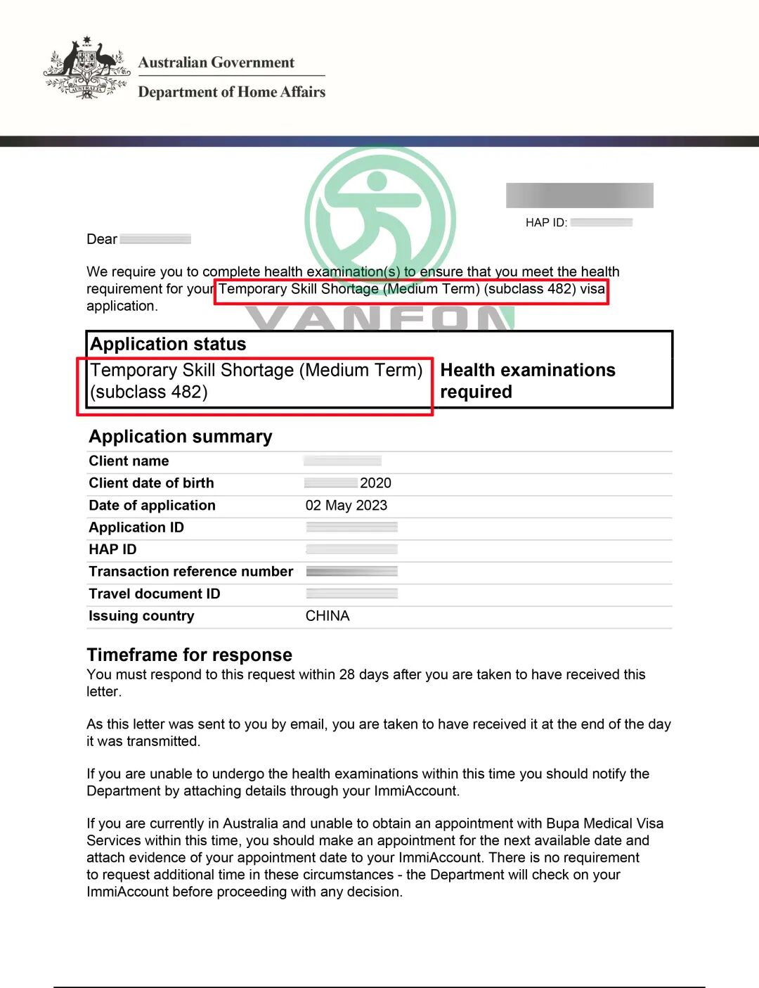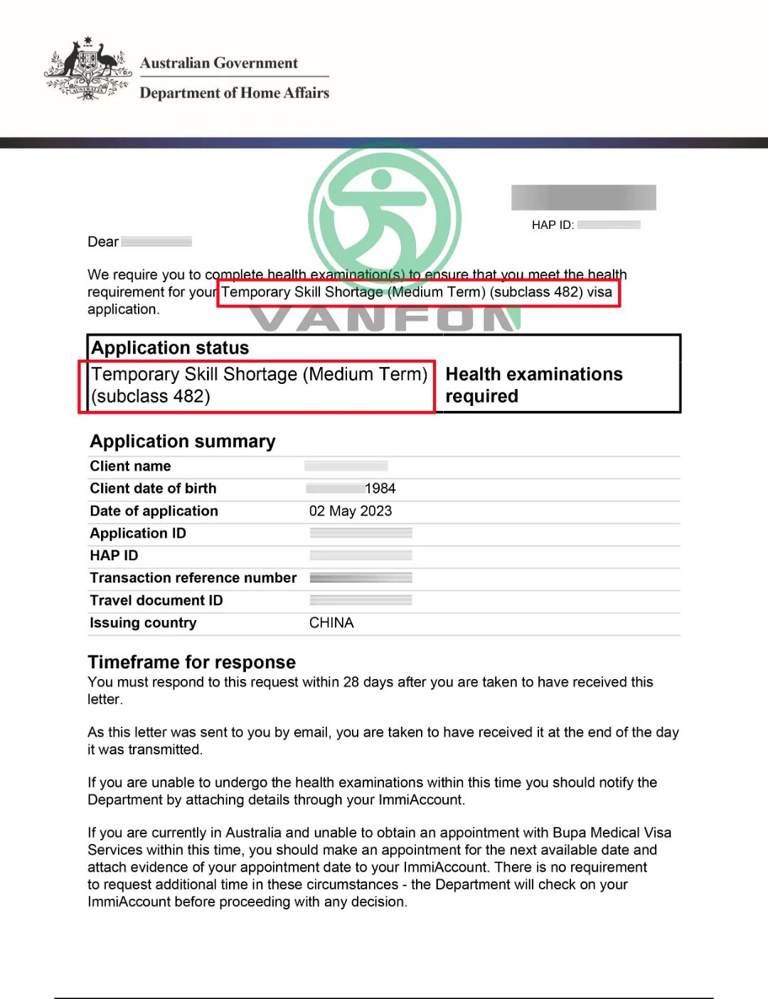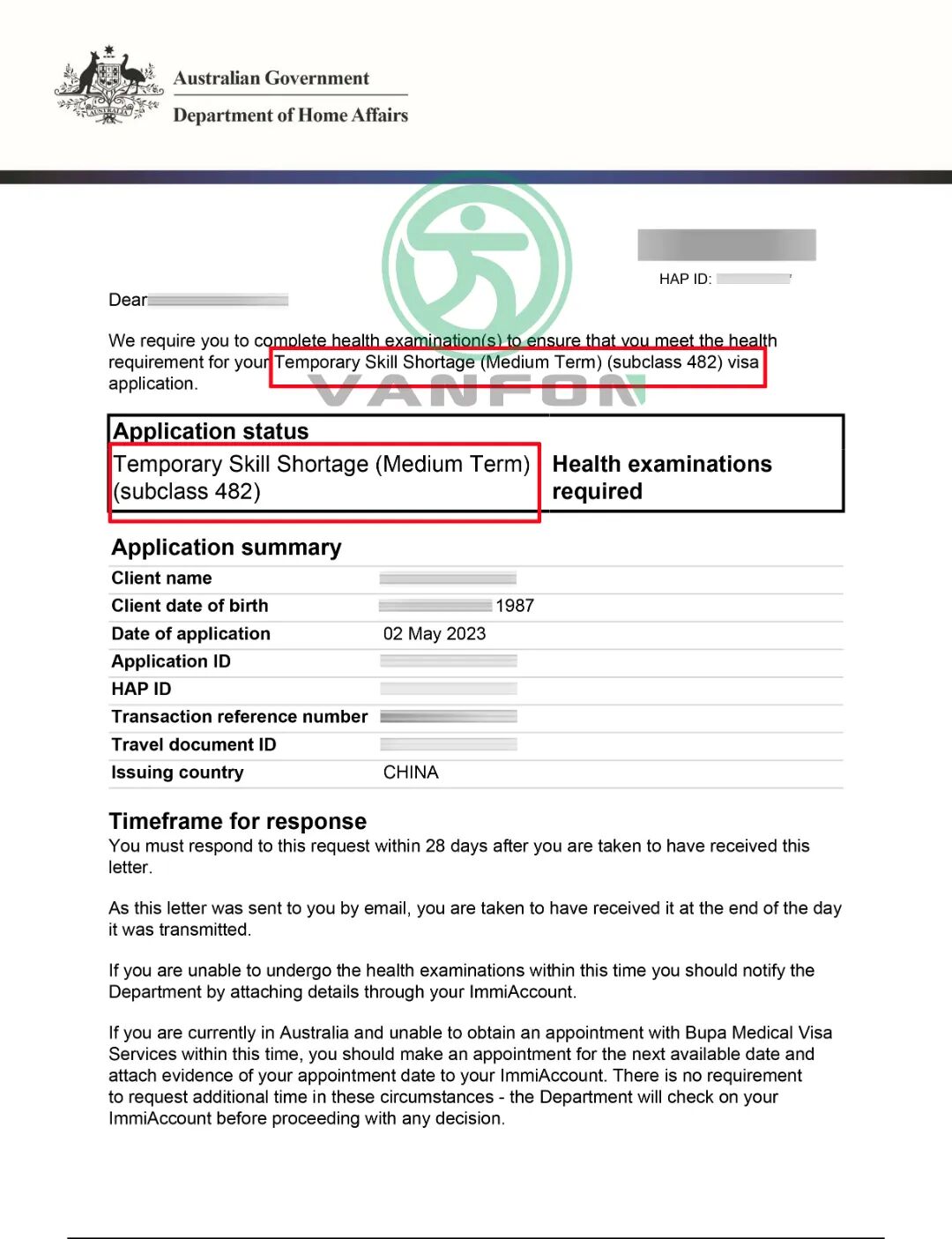 图为5月2号下发的482签证体检信3封!