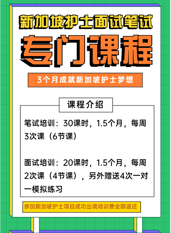 2、我公司提供医院面试和笔试专门培训课程,之后顺利通过该项目赴新加坡工作,将全额返还培训费用。课程简介如下图: