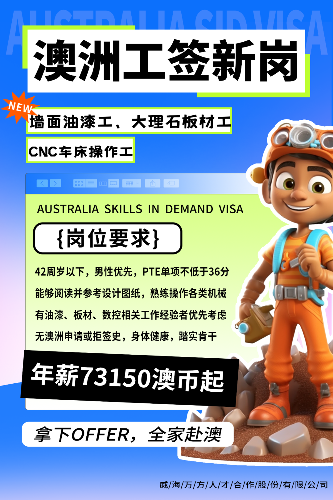 💡澳洲洋人雇主订单更新,急需墙面油漆工、大理石板材工、CNC车床操作工数名,现面向社会招募赴澳人才,年薪73150澳币起,更多工种长期招募,欢迎各类技术人才咨询了解~